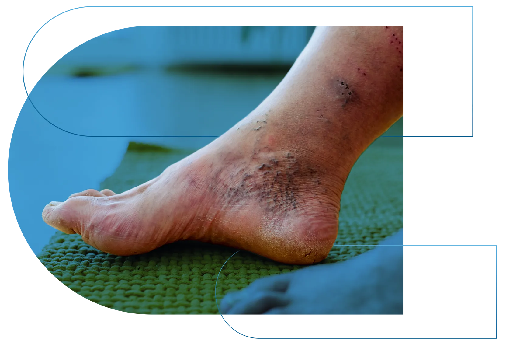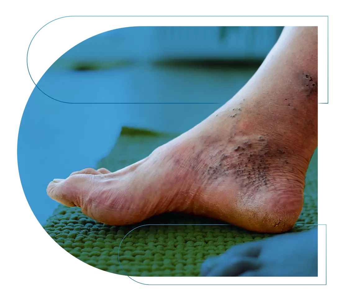 Observar temperatura alterada ou desenvolvimento de bolha, corte, arranhão ou úlcera.