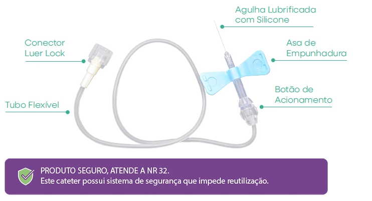 - Produto seguro, atende a NR 32. Este cateter possui sistema de segurança que impede reutilização.