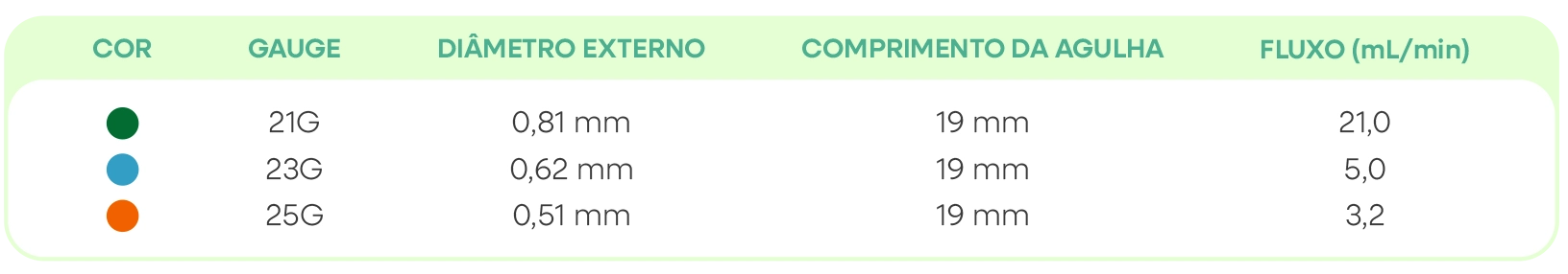 - Bisel trifacetado e agulha lubrificada com silicone, facilita a punção. Reduz a dor atrito e trauma tecidual.